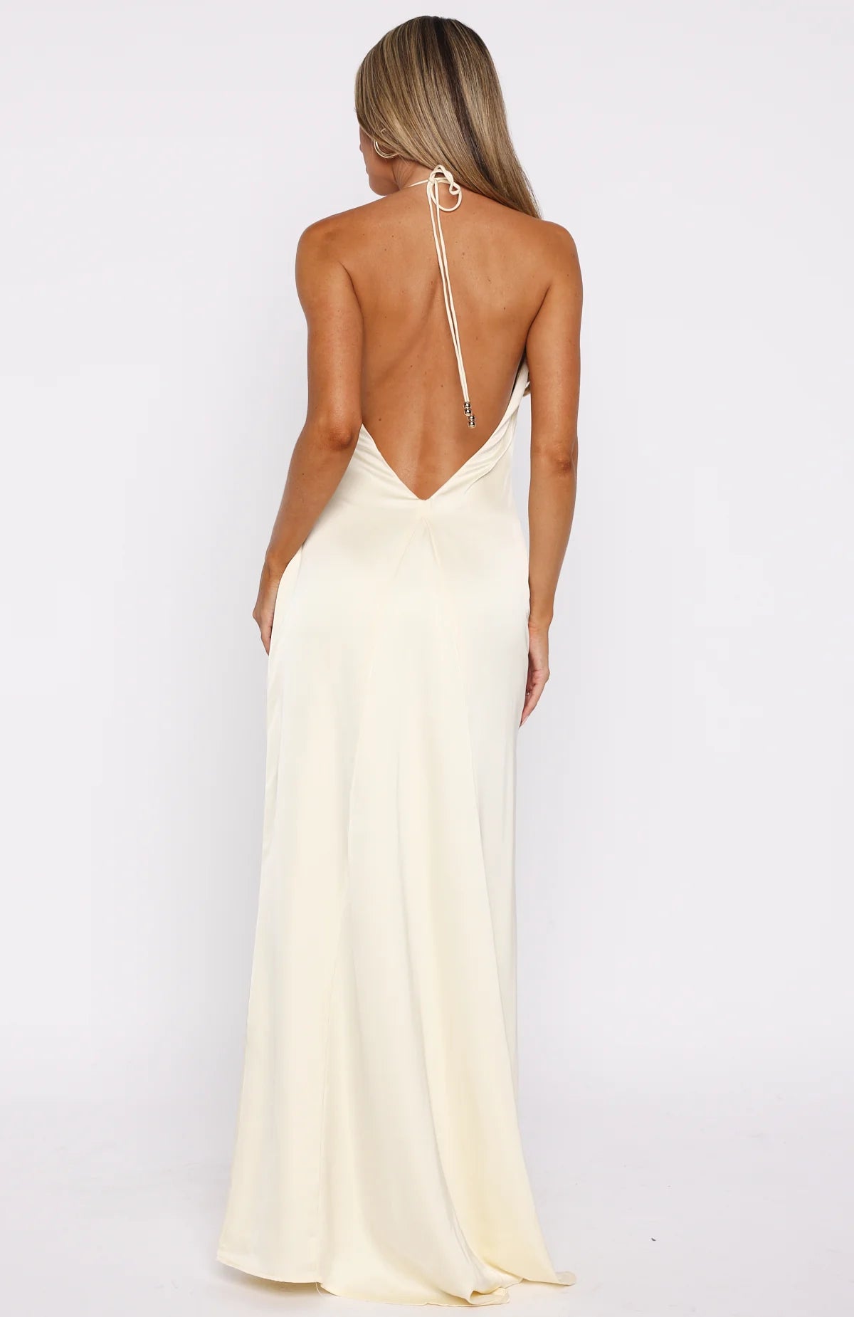 We have fallen in love with the Amore Maxi Dress in Lemon! This captivating piece features delicate spaghetti straps adorned with silver beading, a flattering scoop neckline, and a low back design that exudes elegance. The silky fabrication drapes beautifully, while the full-length, fully lined silhouette ensures comfort. Perfect for evening soirées or special occasions, this dress pair effortlessly with heels and a statement bag.