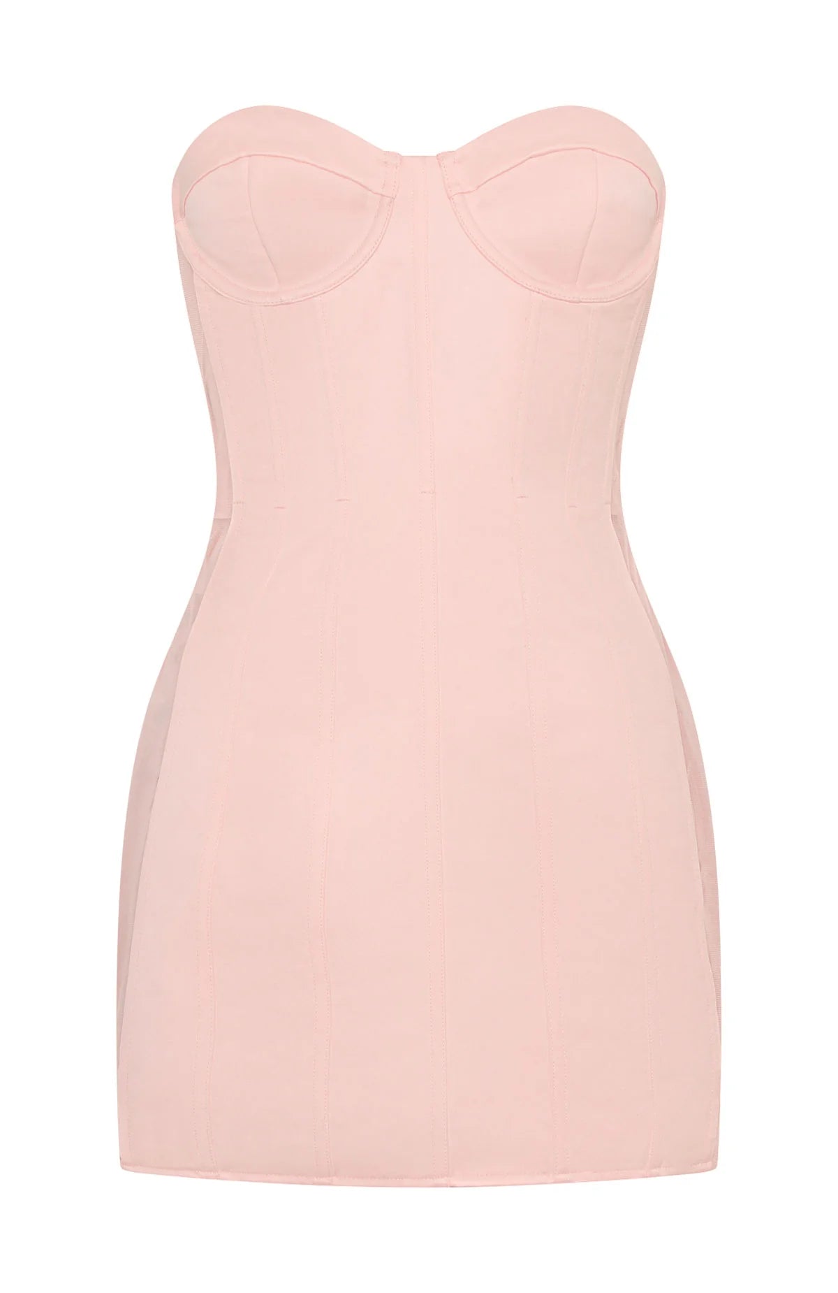 Blow out your candles in style with the Park Avenue Princess Mini Dress Baby Pink! Features a strapless neckline, underwired bust cups, and internal boning that flows into faux‑boning panels. This fitted silhouette boasts a corset‑inspired lace‑up back, sheer mesh detailing along the sides, an invisible zipper, and full lining. Pair it with heels and a statement bag for a show‑stopping look.